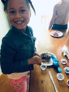 We needed something else fun to do since we were unable to go out and do anything! So our local donut shop put together these donut kits where you could decorate your own donuts.